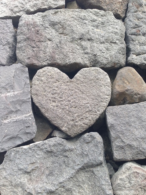 その眼鏡橋のある川沿いの石垣にハートの石があるということで、