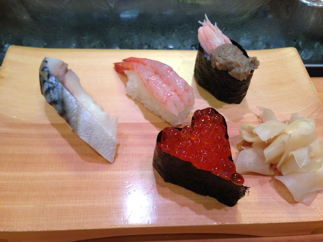 とろしめさば、南蛮えび、かにみそ、いくら