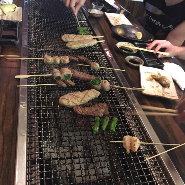 お料理は、自分の欲しい食材をカウンターで貰って、自分の席の炭火で焼くスタイル。