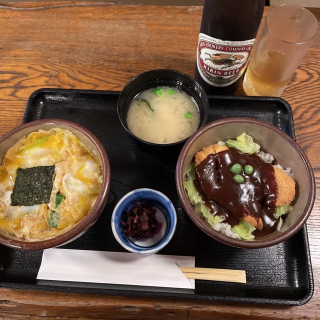 ここで孫膳(デミカツ丼と卵とじカツ丼の小サイズセット)以外を