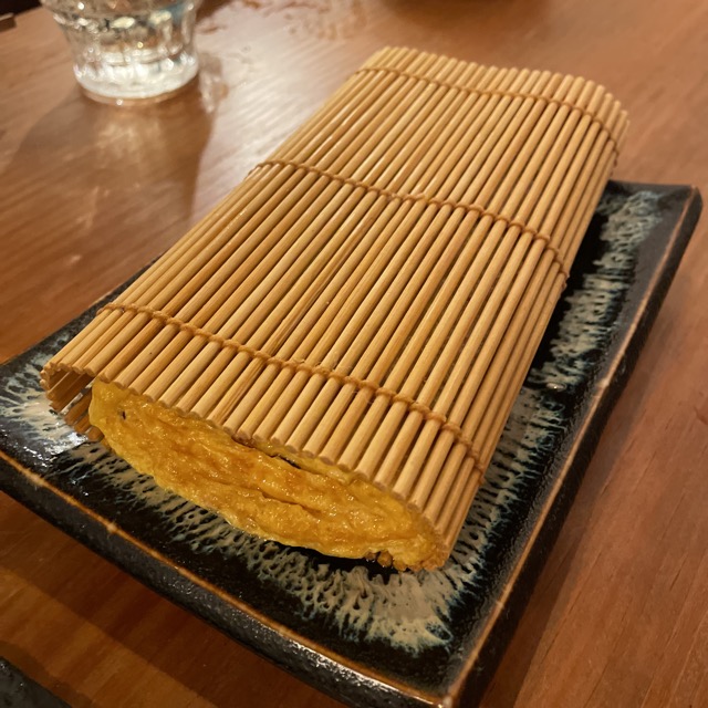 黄ニラのだし巻き。巻きすが付いたままとはオシャレ!
