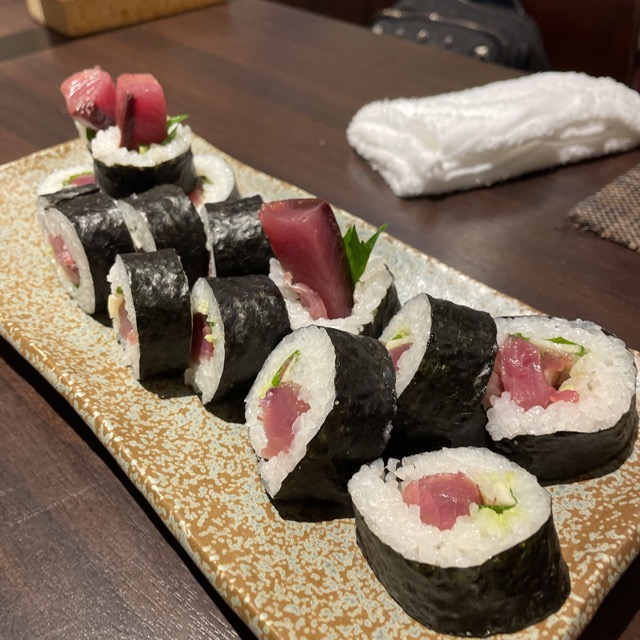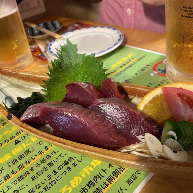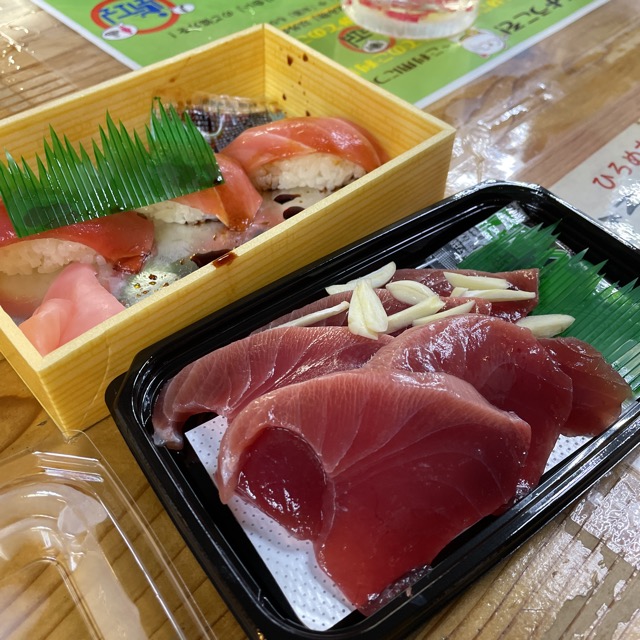 トロのお寿司、かつおのお刺身。