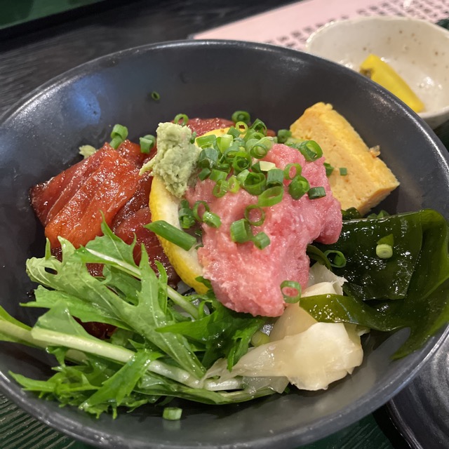 というわけで、昼食のネギトロと漬けマグロ丼。