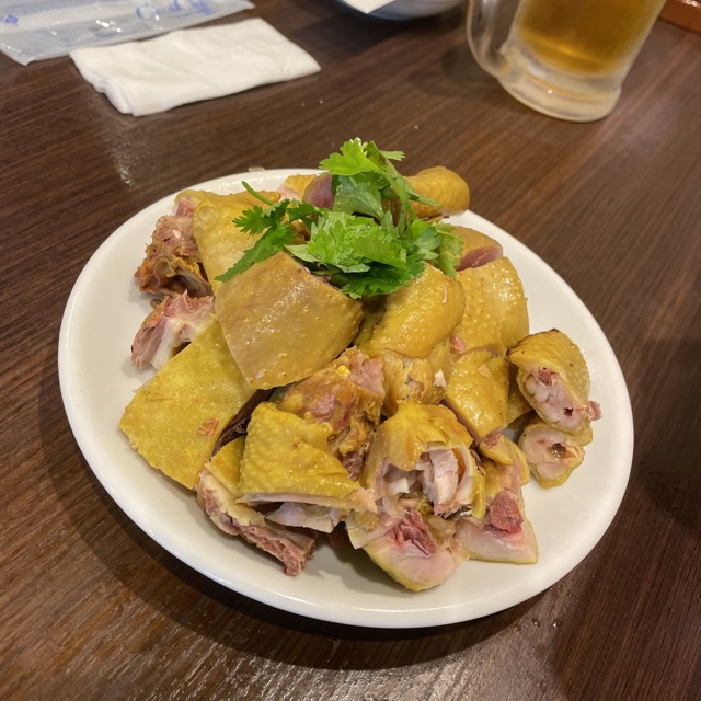 鶏肉を塩スープに漬けて煮込んだもの。