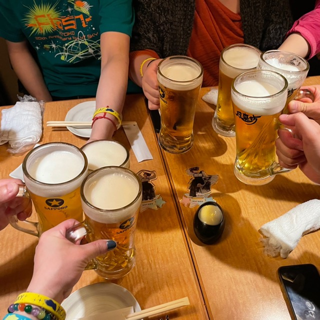 終演後に参加者を集めて、会場近くのいつものお店に突撃しました。