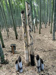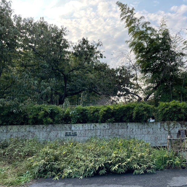 奥には竹林。