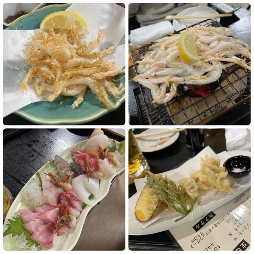 白エビの天ぷら、白エビの昆布焼き、